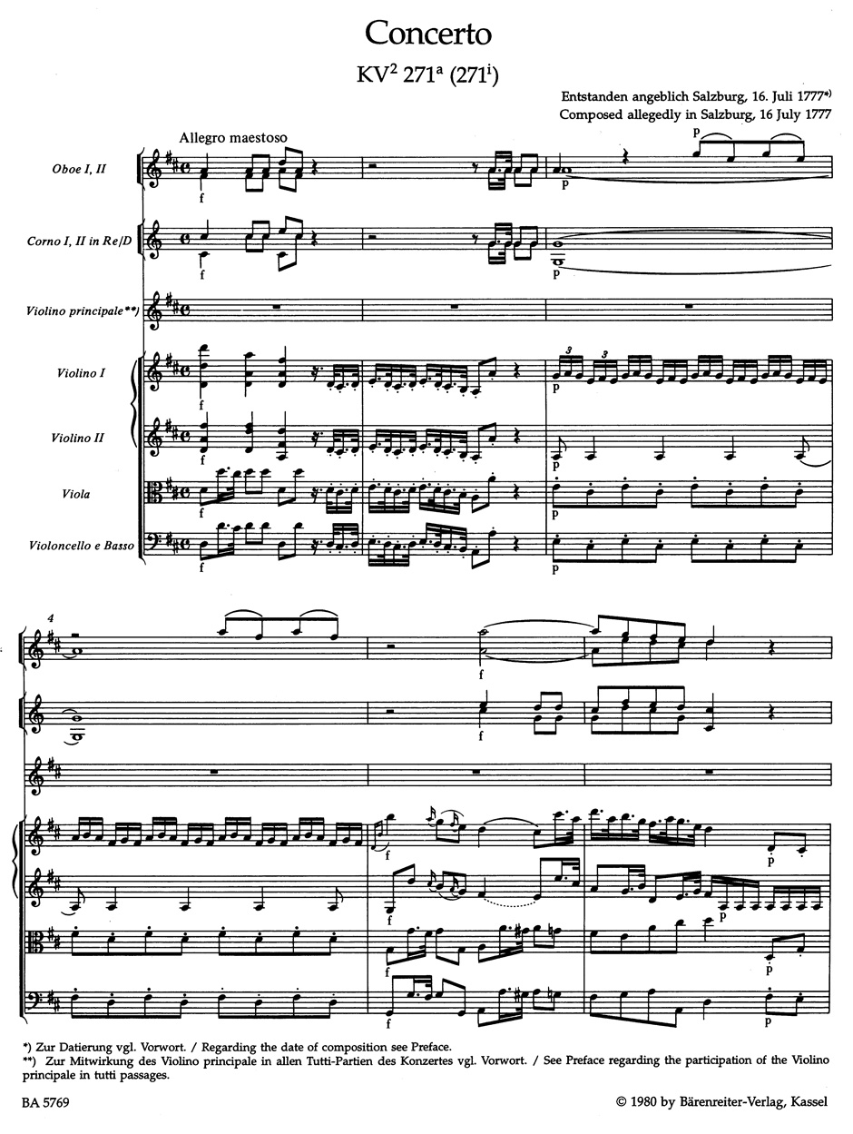 Concerto for Violin und Orchestra D-major K. 271a (271i)