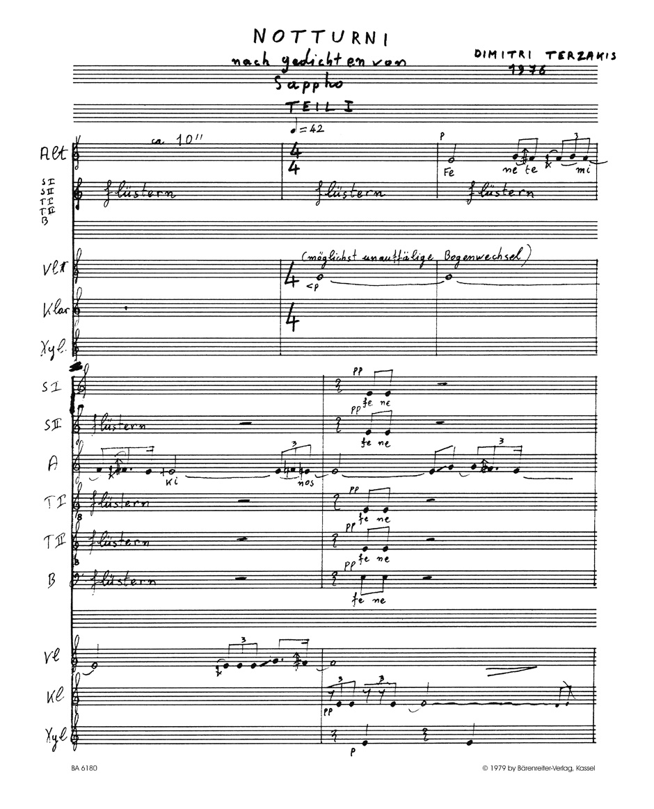 Notturni fur six Singstimmen, Violine, Klarinette und Schlaginstrumente (1976)