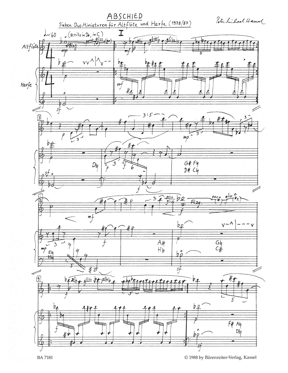 Abschied (1978/1987) -sieben Miniaturen fur Altflote und Harfe-