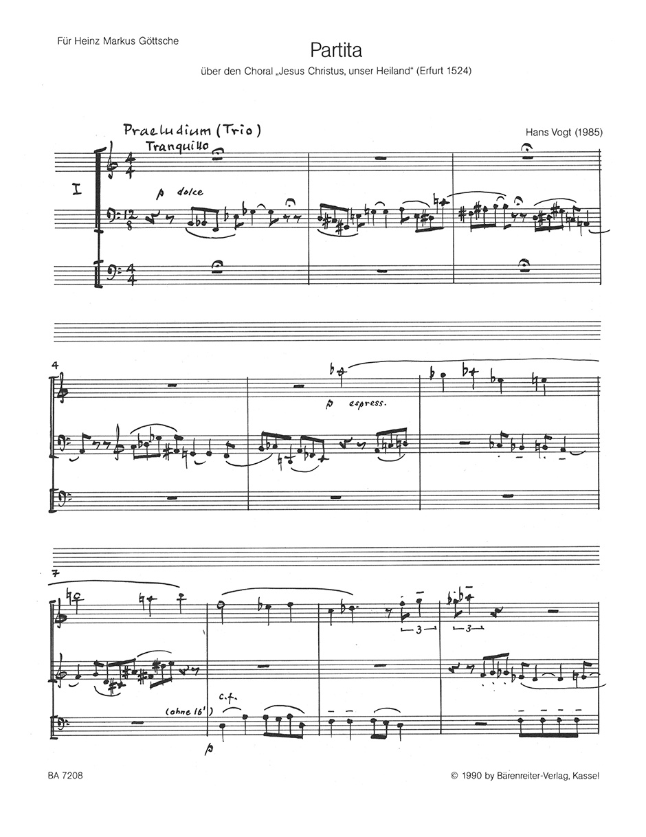 Partita uber den Choral "Jesus Christus, unser Heiland, der von uns den Gotteszorn wandt" (1985) -S.