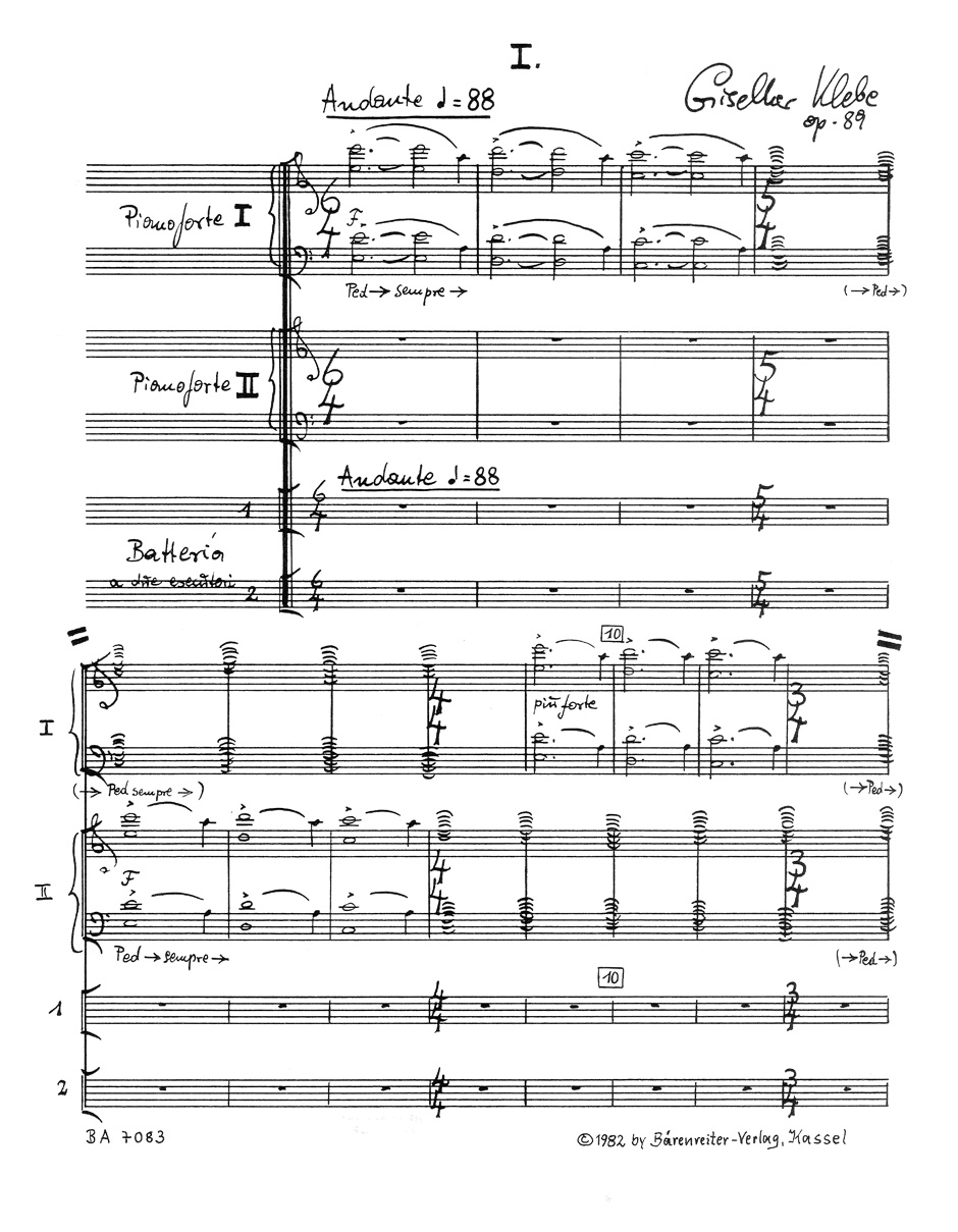 Quattrofonia fur 2 Klaviere und Schlagzeug (2 Spieler) op. 89 (1981/1982)
