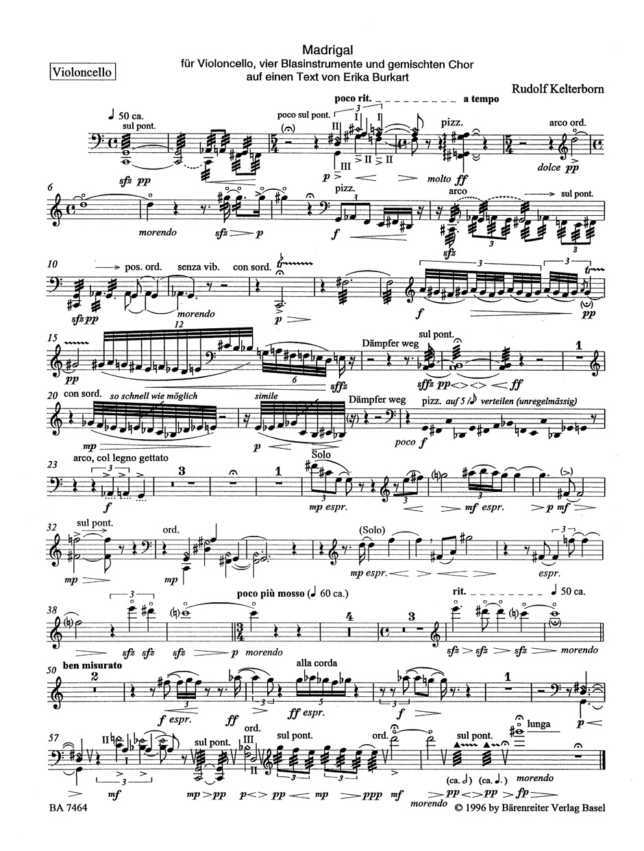 Madrigal fur Violoncello, vier Wind Instruments und Mixed Choir (1995)
