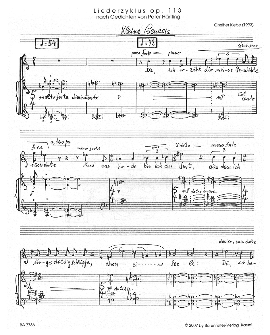 Liederzyklus nach Gedichten von Peter Hartling fur Tenor und Klavier op. 113 (1993)