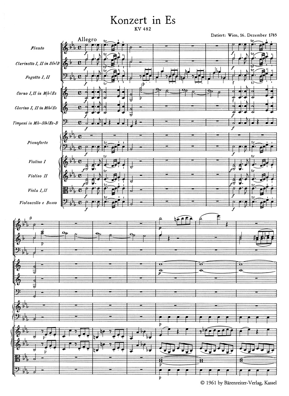 Concerto for Piano and Orchestra E-flat major K. 482