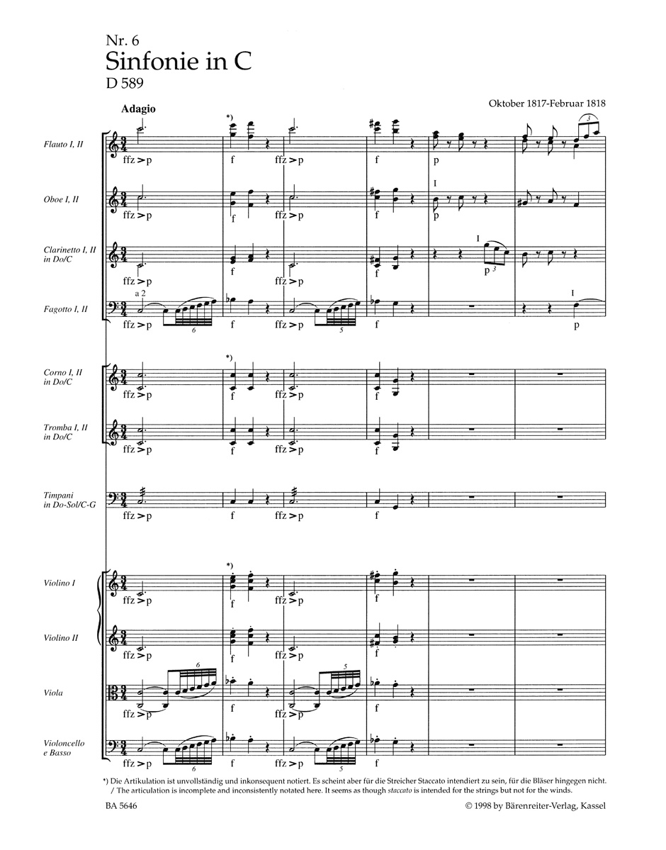 Symphony Nr. 6 C major D 589