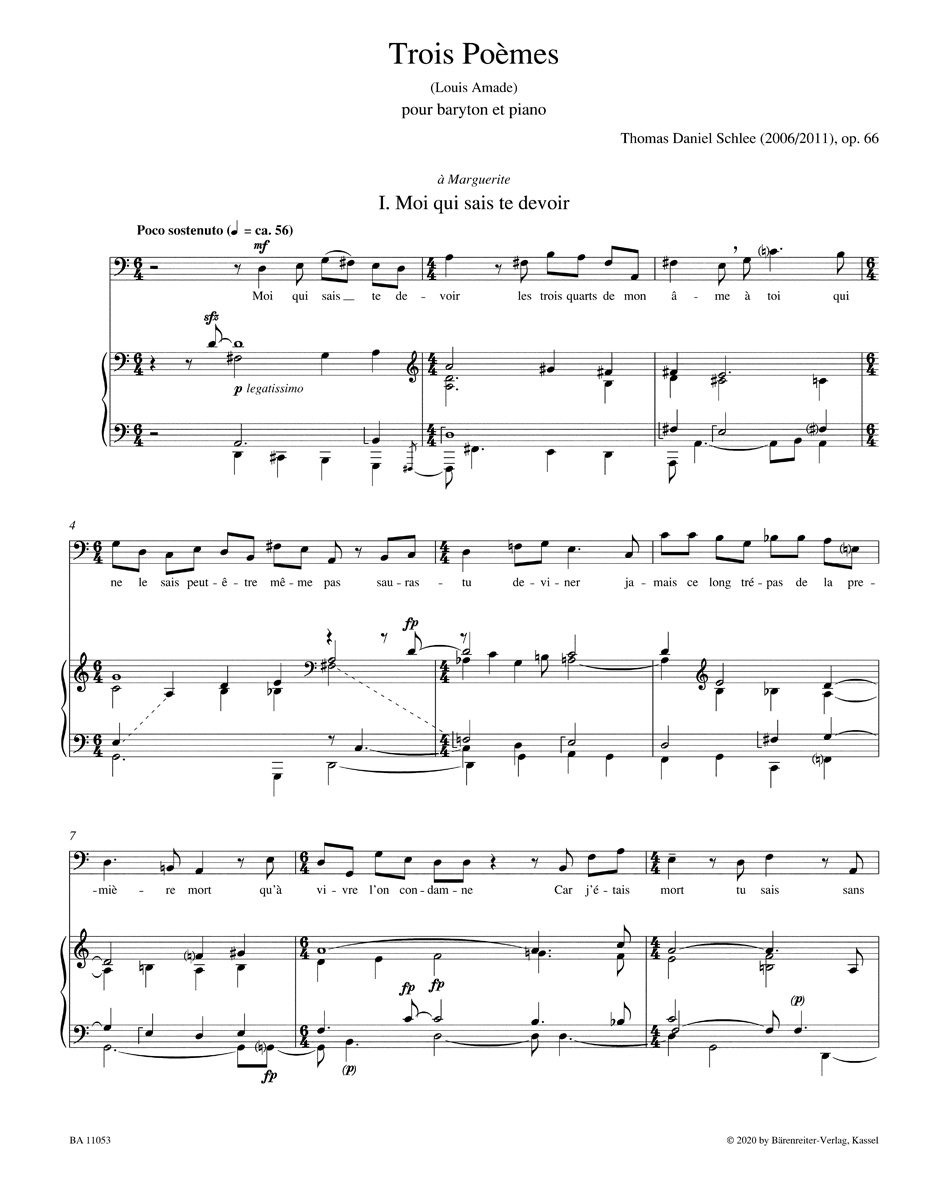 Trois Poemes for baritone and piano op. 66 (2006/2011)