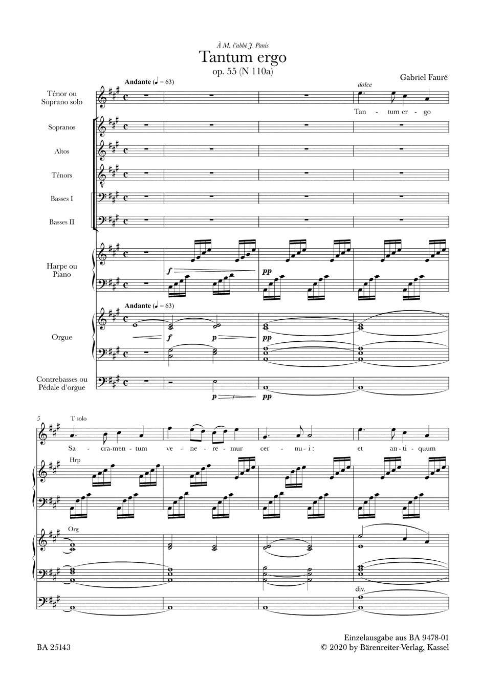 | Voicing: | Tenor solo or Soprano solo, Mixed choir (SATBB), Organ, Harp or Piano, Double bass ad libitum |