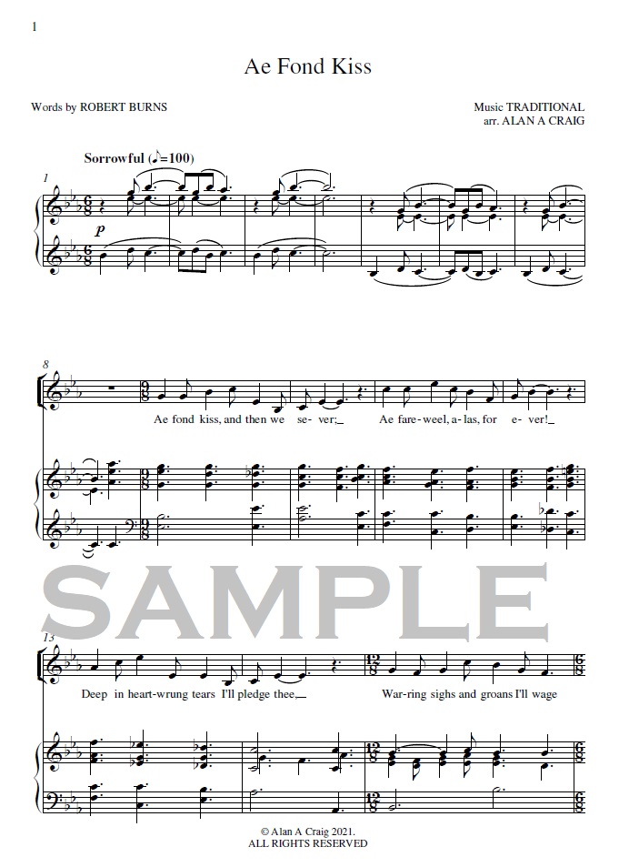 Vocal → Songs & Arias for Voice → Single Sheets → Ae Fond Kiss
