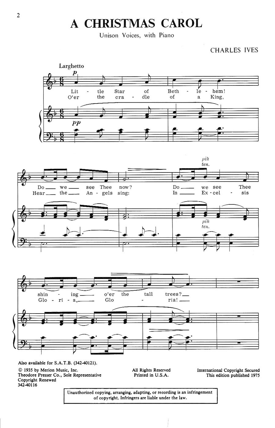 Unison Sacred Christmas Choral