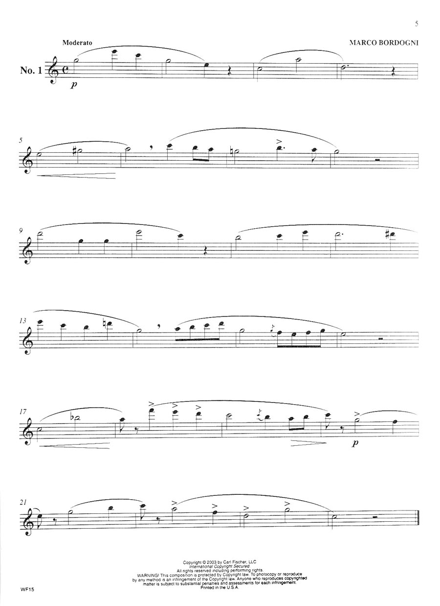54 etudes selected and adapted from the vocalises (vocal exercises) of Marco Bordogni. These etudes have long been a staple for brass players, and are an excellent way to better phrasing, breathing, and to create that 'singing style' that increases musicality in general. The best feature -- technical issues don't get in the way of working on the musicality.