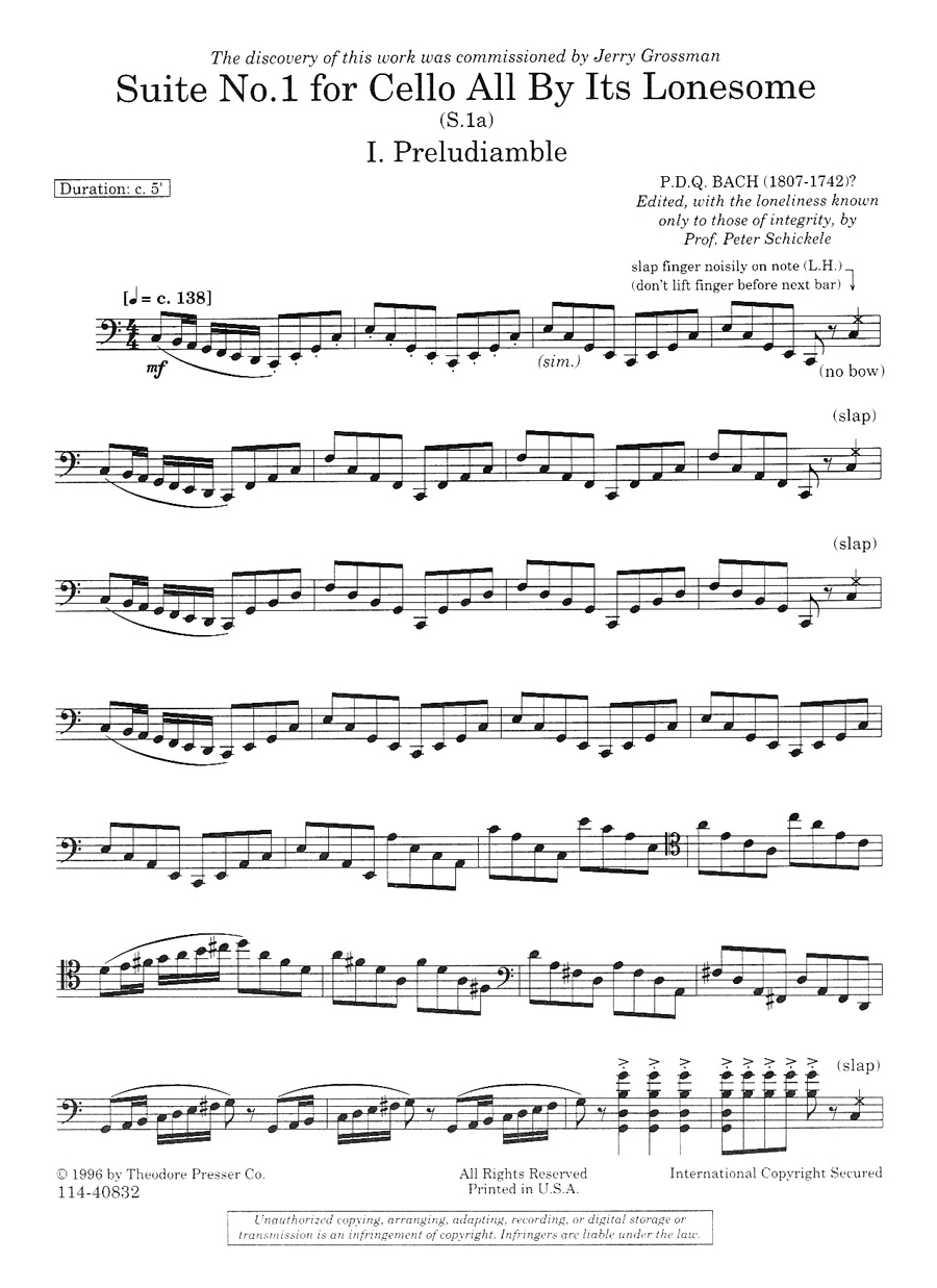 Suite #1 For Cello All By Its Lonesome